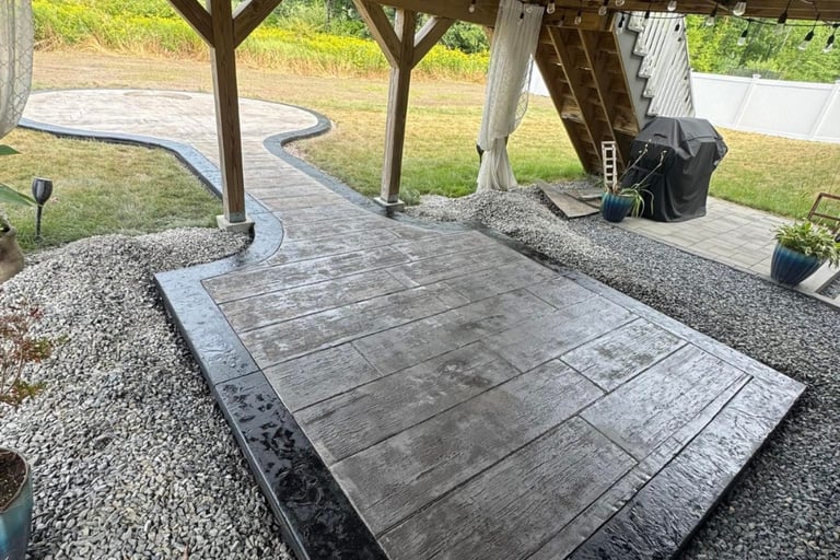 With more than 25 stamp patterns and over 50 color options available, every project can be tailored to your vision. We also offer the ability to integrate mixed-color borders or inlays, creating striking accents that elevate your outdoor space. Perfect for patios, walkways, driveways, and pool decks, our stamped and decorative concrete installations balance form and function.
